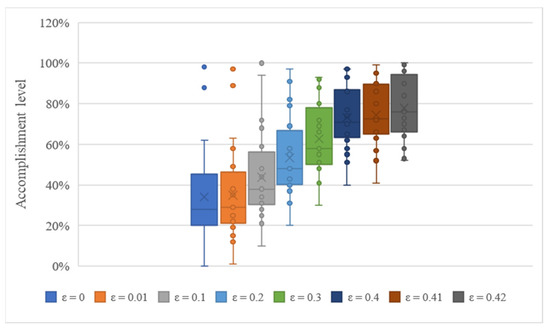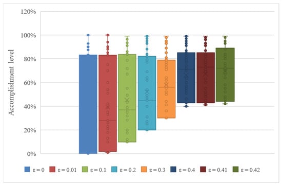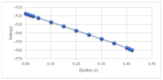 The Pareto frontier, obtained from a comparison of the entropy, shows that while entropy decreases, the ε value increases, which means that the problem is multi-objective. Thus, considering the number of vehicles when using the links to obtain comparable entropy values is necessary.