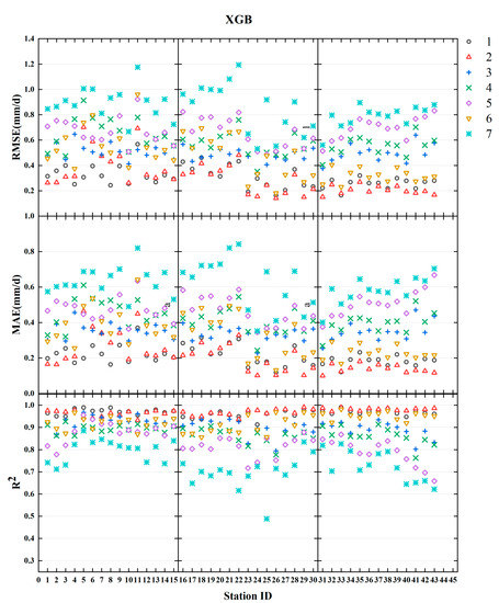In terms of adjusting the parameters of these models, grid search method is used in XGB model. The presented statistical parameters (R2, RMSE and MAE) are trained with 70% of the data, and the remaining 30% are verified. As for the machine learning model, this paper applies the same model to all stations.