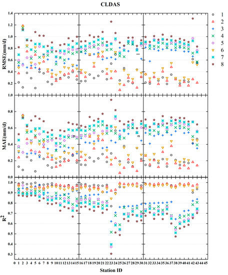 Higher R2 values (closer to 1) or lower RMSE and MAE values indicate a better estimation performance of the CLDAS dataset.