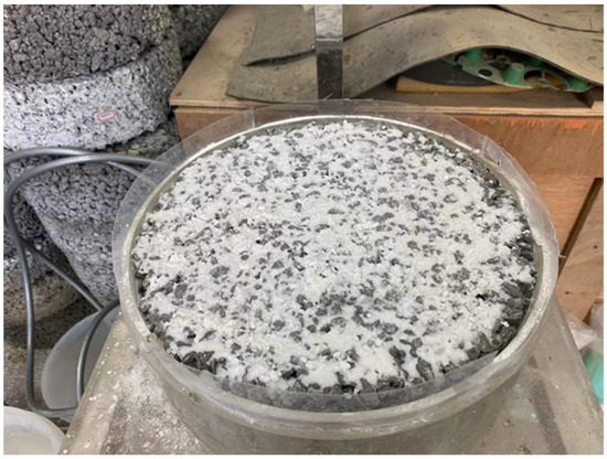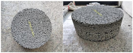 The porous concrete specimens used in the experiments were prepared according to the specifications of Chinese National Standard CJJ/T135–2009, as listed in Table 1. Each test specimen was 300 mm in diameter with a thickness of 100 mm (Figure 1).