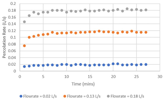 Figure 6 shows the results of infiltration testing on clean concrete specimens for the three selected flowrates.