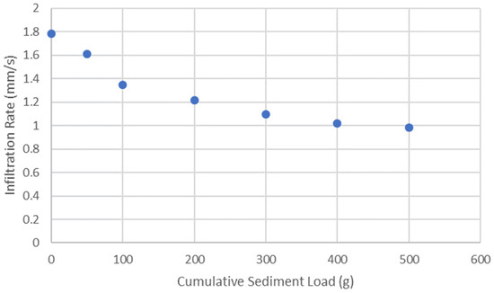 From Figure 7, the sediment loads required to reduce the infiltration rate by certain proportions can be derived, as shown in Table 4.