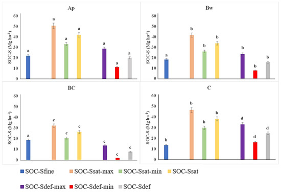 | T-SOC-S (Mg ha−1) | T-SOC-S = Σ soil horizon 1….n SOC-S soil horizons [69] d |