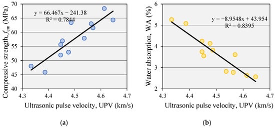 Correlations between (a) fcm and UPV and (b) WA and UPV.