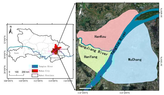 Taking the formation and development of Hankou in Wuhan as an example, the history of traditional habitat development in ancient China and the traditional human–water relationship is the main topic of this study. According to the Chinese history, 1949 is regarded as the founding of the People’s Republic of China, which was the beginning of the modern period in China and meant the end of ancient China. The Hanjiang River was diverted, and a port was built on the shore of Hankow, allowing people to trade and congregate there to form a town, giving birth to the town of Hankow in Wuhan. Additionally, since flooding occurred on the north side of Hankow every year during the rainy season, the then-manager of Hankow proposed to build the Yuan Gong Dike in 1635 to prevent floods (the first man-made dike in the recorded history of Hankow). Therefore, the period 1635–1949 was selected as the time boundary to study the relationship between humans and water in the historical period of Hankow, China.