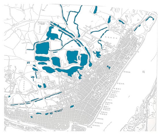 Schematic diagram of the layout of water systems during 1932 based on GIS. Image source: This drawing is based on the 1932 “Wuhan City Street Map”.