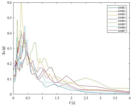 Acceleration spectrums Sa(T) of the seven selected seismic GMRs.