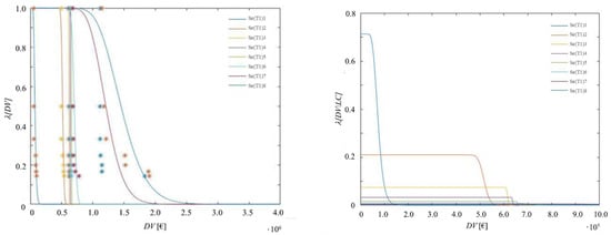 Finally, the probabilistic distribution of the decision variable DV given the expected damage () is defined through consequence functions, providing the likely consequences of damage translated into potential repair and replacement costs, repair time, casualties, unsafe placarding, and other impacts [].