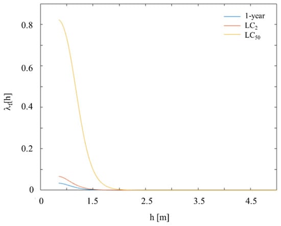 Average curves for LC2 and LC50 are derived from the mean annual probability of exceedance [] relying on Poisson’s distribution equation, as shown in Table 1.