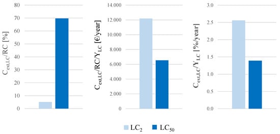 From an economic perspective, results show that initial costs represent the most significant costs (being almost 60% of the overall costs CLC if an LC scenario of 50 years is considered), but losses related to natural hazards also represent a relevant contribution to the overall expected cost (up to 40% of the overall cost CLC if an LC scenario of 50 years is considered), being even predominant over the costs of the end-of-life management. Among extraordinary costs, those related to seismic events are prevalent being 29% of the overall costs CLC for YLC = 50 (against 12% related to floods).