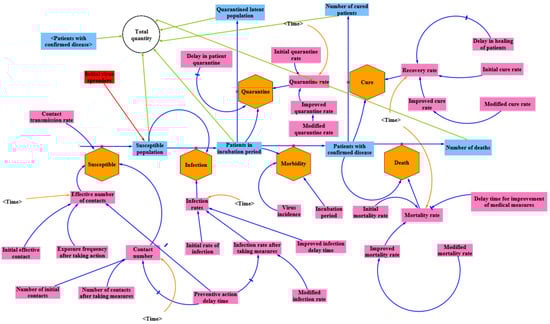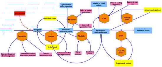 According to the model and the derived formula, the improved SEQIR model diagram for the control period is drawn using Vensim software, as shown in Figure 4.