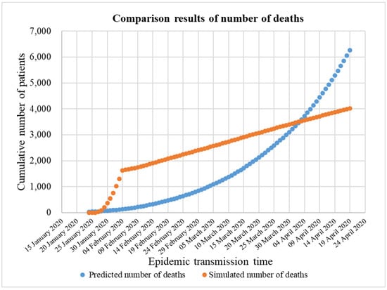 Although the effect of the death toll during the prevention and control period is better than that predicted during the outbreak period, there is still a gap between the simulation results and the actual data. Thus, further adjustment of the model is required to get closer to the change in the death toll during the prevention and control period.