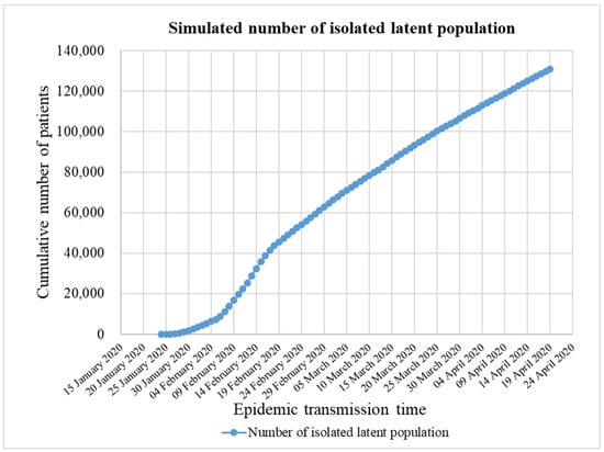 As shown in Figure 14, the number of patients with isolation latency increased slowly from 24 January to 19 February. Because it takes a certain amount of time to check the close contacts of the confirmed patients and the initial isolation measures are not perfect [31], the number of patients with isolation latency increased slowly. After 19 February, there was a linear increase, and after the number of confirmed patients reached a plateau, the isolation measures continued, and the number of patients in the incubation period of isolation continued to increase.