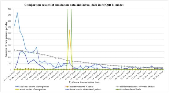 Comparison of the actual data with simulation results in the SEQIR II model.