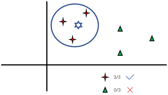 Then, find out the blue star (BS) level; the BS can be RD or GT. “K” is the nearest neighbor of the KNN algorithm to select from it, which is shown in Figure 3.