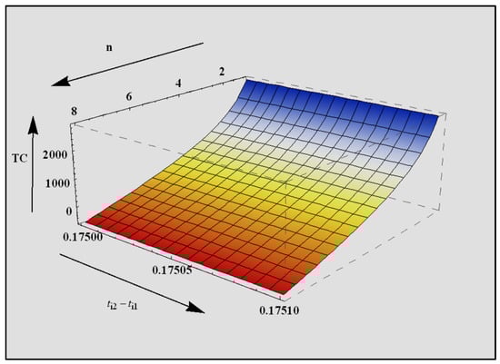 - As the value of increases, total cost decreases. This shows that inspection during supply chain for deteriorating inventories is a profitable step. Inspection during supply chain reduces the deterioration rate and reduces deterioration cost. In the same way, this policy reduces carbon emission that also reduces carbon tax; therefore this policy helps to minimize the cost. Along with this, it helps to make a supply chain a green supply chain. It is observed in Table 1 that if we increase , we can minimize the total cost. But it is also observed that when we put total cost decreases, but as we put n = 6 or more the total cost becomes negative; therefore, it is observed that n should be between 3 and 5 for minimum cost.