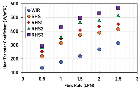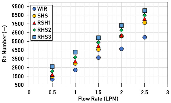 and Re are determined based on the measured flow rate according to the equivalent hydraulic diameter, . Where is evaluated experimentally by measuring the HTF volume, , required to fill the entire length of the copper tube, with the helical shaft insert as follows [41]: