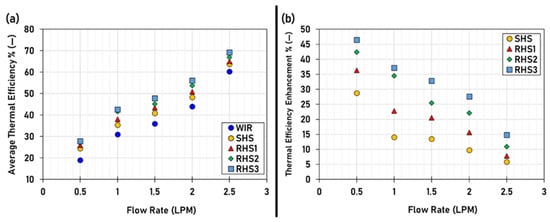 Other inserts were used to enhance heat transfer; Chakraborty et al. [30] utilized a helical coil within the receiver of a PTC. They simulated the cases using the ANSYS software for pure water mass flow rates (0.016–0.033 kg/s). The exergy and thermal efficiency were increased by 2.4–3.3% and 10–16%, respectively, when helical coils were inserted within the receiver, despite the increased pumping power. Zhao et al. [31] experimentally studied using pin fines within the PTC receiver tube, with air as an HTF for Re number range of 40,000–60,000. It can be concluded from the obtained results that PTC fitted with pin fines enhanced both exergy and energy efficiency by 2.55–4.29% and 10.4–14.5% in comparison with the plain receiver, while the pressure losses were increased about 10–20 times.