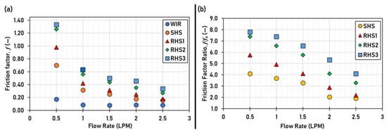 The Darcy–Weisbach friction factor is described as [18,30]: