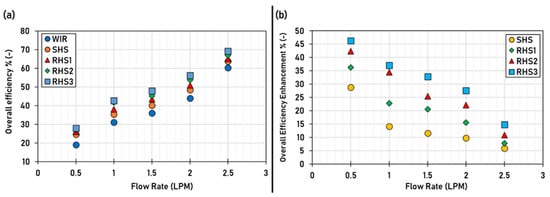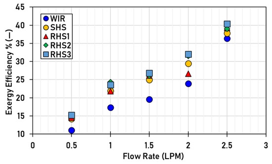 Cong et al. [26] experimentally studied the flow characteristic and thermal performance of a tube with a stationary twisted tape and a rotating one at 4 RPM with TiO2-water nanofluid as an HTF. In addition, different Re numbers from 600 to 7000 and different mass fractions of nanoparticles of 0.1%, 0.3%, and 0.5% were studied. They observed that using the applied nanofluid with rotating twisted tape improved the thermal performance by 53.1–101.6%. Furthermore, the exergy efficiency of the stationary twisted tape was increased compared to the plain tube case under similar pumping power. On the other hand, it can be reduced by using the combination of nanofluids and rotating twisted tape.