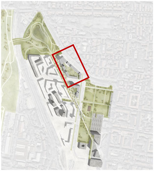 The chosen site is located in the Bolognina neighborhood, north of the railway station, which has been largely redeveloped during the last 15 years. According to the masterplan, several residential buildings and some commercial volumes replaced the former general market within a large polygonal area, divided into many plots which approximately recreate the pattern size of the original district. For the purpose of the study, a plot located on the northern side, and assigned to a mixed-use, was selected, having adequate distances from surroundings and representing a well-balanced mediation between the consolidated urban fabric of five-story buildings with the taller volumes of the new development in its size and density (Figure 2).