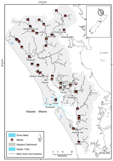 - Paul, D.H.; Munro, T.; Carter, M.; Norris, L.; Nathan, R. Whatitiri: “The Lands, the Peoples and Their Water”. Report Prepared for Te Paparahi o Te Raki Inquiry Wai 1040; Waitangi Tribunal: Wellington, New Zealand, 2012.