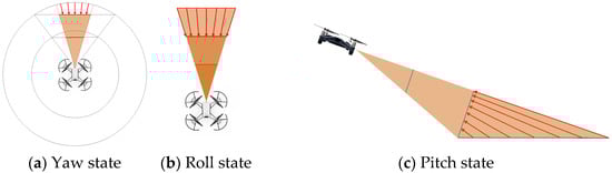 As shown in Figure 14, when the UAV is in a stable state under different yaw angles, roll angles and pitch angles, the geometric center of the target object projected on the image frame of the UAV camera remains unchanged. When interfered by external force, the geometric center of the object changes on the image frame, and the UAV can be returned to the original state by the correction algorithm, which is also applicable to the different attitude (yaw and pitch angles controlling) of the UAV.