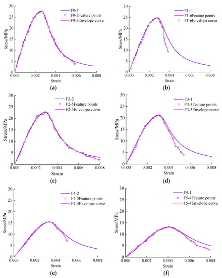 In addition, the unloading and reloading stress paths of acid-corroded concrete under cyclic compression load were determined by Equations (15) and (16).