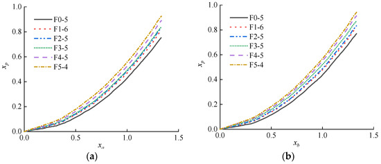 Relationship curves between the residual strain xp and strain at unloading point xa or reloading point xb: (a) the relationship between xp and xa; and (b) the relationship between xp and xb.