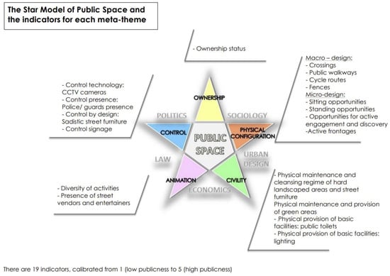 The Star Model of Public Space and indicators for each meta-theme. Source: Varna & Damiano [].