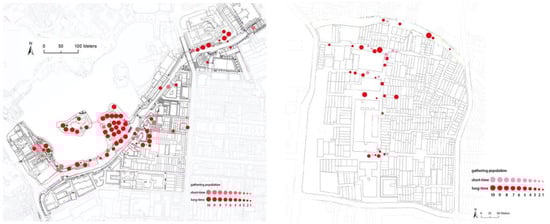 Spatial distribution of social interaction in the Lychee Bay Park (left) and Yaohua Neighborhood (right).