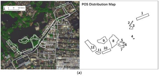 Quantitative assessment of the vitality of POS has been studied from different perspectives, but studies on the evaluation of publicness are insufficient. Garau and Annunziata used Space Syntax and spatial analysis techniques to investigate the conditions that influence the vibrancy and urbanity of the built environment []. Ye et al. researched the relationship between publicness and urban morphology, and focused on the influence of block density and typology []. Carta et al. performed similar research, but used big data to enhance the survey method []. Qi et al. explored the visual features of urban street publicness in Nanjing []. Kim discussed the relationship between land use and urban vitality []. Instead of revealing only a single physical factor of the publicness of spaces, Liu et al. established a multi-factor framework for assessing street vitality by physical indicators such as land-use density, land use mix, length of street, intersection, sky view and green view []. However, these studies discussed POS from the perspective of the built environment while lacking a social perspective and holistic framework from both physical and social dimensions.