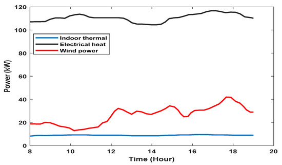 Electric load, wind power generation and indoor heat source.
