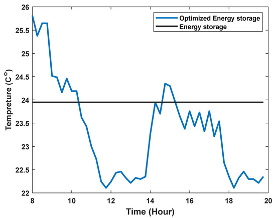 Figure 5 shows that the room temperature fluctuates significantly after the participation of smart energy storage, and the building cooling load curve is optimized. In the period of high electricity price, which occurs at night due to the decrease of light intensity, the system’s cooling load demand is greatly reduced, resulting in insufficient power generation of gas turbines. Subsequently, the insufficient power needs to be purchased from the grid. The cost of purchasing electricity decreased during this period.
