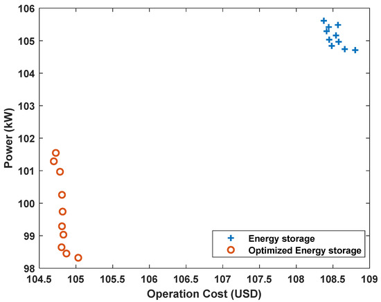 The DCSA algorithm parameters, following the population size of the algorithm, is set to 10; the number of iterations is 100; the learning factor r1 = r2 = r3 = 0.15; and the initial inertia weight is 0.2548. Figure 8 shows the DCSA of the algorithm solution results in the two scheduling situations. It can be seen from the DCSA that the single pursuit of the minimum operating cost will increase the environmental cost, therefore, it is more practical to consider environmental factors in the actual process. At the same time, the multi-objective optimization process provides a number of different solutions for decision makers. The local environmental policy selects the most reasonable dispatch plan.