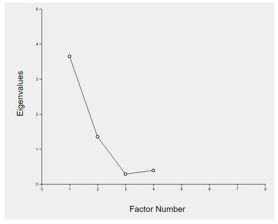 In applying Q-sorts for analysis, Watts and Stenner [50] recommend conducting a centroid factor analysis that can reveal the ideal Q-sort, called factor array, for each factor found significant. This study extracted three centroid factors from the Q-sort data set, which were input into the Ken Q-analysis software. Two factors were found to be statistically significant using the Kaiser-Guttman criterion of Eigenvalues greater than one, as indicated by Zabala and Pascual [57] and shown in Table 6 below. Watts and Stenner [50] recommend using Cattell’s Scree Plot diagram to decide the number of factors where the line changes slope, as shown in Figure 3 below. They also suggest a rule of thumb of having at least one factor for every 5 to 6 participants. For the CFA analysis, Ken Q-analysis software was used to conduct factor rotations to observe the factor loadings between the first and the second factors and tested it between the first and third factors, but it was found not statistically significant. Ken Q-analysis allowed the data to be checked to seven factors as recommended by Brown and Rhoades [54], with both the Kaiser criterion and the Scree test indicating that three factors were sufficient in this case [54]. Table 5 shows that Factor 1 explains 36 per cent of the variance in the Q-sorts, while Factors 1 and 2 together can account for 49 per cent of the cumulative variance.