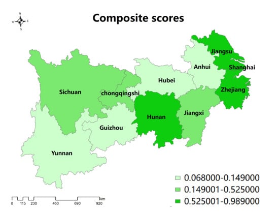 - The entropy-weight method was used to determine the index weights while TOPSIS (Technique for Order Preference by Similarity to an Ideal Solution) was used to rank the results. ArcGIS software was utilized to draw a regional distribution map for comparing the differences in evaluation results among provinces and cities in the Yangtze River economic zone in a more intuitive way. The entropy-weight–TOPSIS evaluation results are verified using the fuzzy comprehensive evaluation (FCE) method. These results can be used as feedback for the implementation of relevant policies and as a reference for policy adjustment.