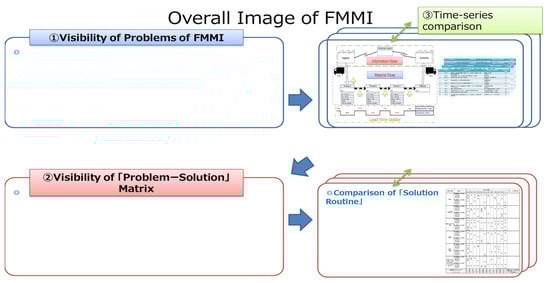 At the same time, however, the basic layout of such FMMIs should be similar enough to each other, so that the participating firms (e.g., chemical producers) can learn efficiently from other participating firms of different sectors (e.g., automakers) by reading their FMMIs. For this purpose, the FMMIs for different industrial sectors should keep the minimum spatial commonality so that it is possible for all the participants to quickly identify the places in other firms where the flows are not streamlined or where they can be made better, and thereby make quick comparative flow analysis across different industrial sectors. Conversely, they can grasp their own unique processes, functions, and activities through such cross-industrial FMMI analyses.