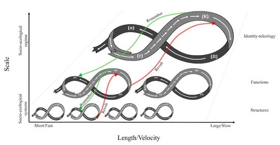 The framework developed in this paper offers a fertile ground for developing insightful analyses of SESs across geographical scales and systemic levels of organization. Consider, for instance, agricultural systems as systems whose stability is increasingly threatened at both local and global scales. Climate change, eutrophication, soil depletion, emerging herbicide-tolerant weeds, and spreading antibiotic resistance are what Jason Moore [39] calls the rise of a “negative value.” From a panarchy perspective, such a negative value is threatens not only food security, but also the stability of other adaptive cycles at different levels of panarchical organization. Through its impact on farm profitability, food prices, and social welfare, the accumulation of negative value represents a “revolt” function warning the other sectors of the economy, as well as their encompassing institutions of social coordination, that the behavior that is expected from agri-food systems could become unviable at some point in the near future. The “revolt” in one sector of the economy may spread throughout the entire socio-economic system via financial markets, for instance, or inflation, or even social unrest. According to the framework proposed in this article, the systemic impact of a “revolt” function could nevertheless be offset by “remember” functions enacted in different levels of the panarchy—for example, through the development of new technologies, changing lifestyles and consumption patterns, or through financial innovations. The assessment of agri-food systems’ sustainability is therefore a matter that requires a multi-scale lens to be properly dealt with. This entails assessing not only the biophysical capacity of a local (or even the global) agricultural system to feed a given population through more or less carbon-intensive techniques, but also assessing agri-food systems capability to support a particular type of societal organization, and evaluating SESs’ vulnerability and resilience to shocks caused by the dialectical tension between “revolt” and “remember” functions.