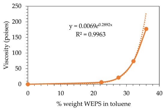 An average of the amount of styrene produced per liter of LP gas consumed in the experiments carried out with the rotary reactor was made, which resulted in 1.144 g of styrene/L of LP gas (in the gas phase), which is equivalent to 0.535 kg of styrene/kg of LP gas. These data were used to evaluate the amount of LP gas required for styrene production in this process. Currently in Mexico City, the sale price of 0.535 kg of styrene monomer is USD 2.39, the cost of LP gas is USD 1.03 per kg, the cost of electricity is USD 0.09, and the cost of WEPS is estimated at USD 0.29, which makes an operating cost to produce 0.535 kg of styrene USD 1.41 in this pilot plant. Therefore, it can be said in a preliminary way and from an overall view that this process could be profitable on an industrial scale, although the investment cost of the equipment, as well as the cost of styrene purification, labor, maintenance, and other costs must also be taken into account.