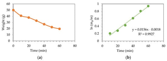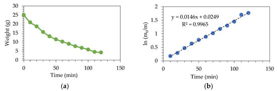 Figure 11a. In the case of experiment R-1, where there was only simple insulation (glass fiber with a thickness of 4 cm), the reactor was heated to 438 °C, so a smaller slope of temperature against time was observed. In the case of experiment R-10, composite insulation was built (glass fiber plus ceramic fiber). The reactor was heated to 508 °C, so a greater temperature slope against time was observed.