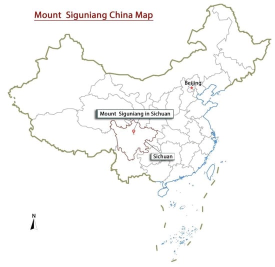Mount Siguniang’s Location in China. Source: www.chinadiscover.com (accessed on 23 May 2022).