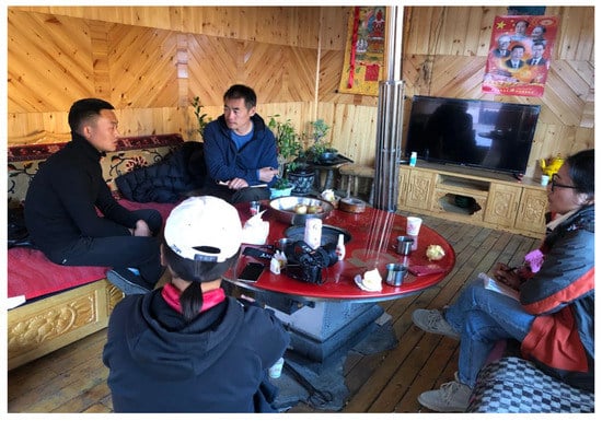 This study used observational methods and semi-structured interviews to collect data. From August to November 2020, the authors conducted field research in Mt. Siguniang Town and carried out interviews with 24 residents. Most of them were local Tibetans with an age span from 28 to 66 years old, including local administrators, mountain outdoor service providers, mountain outdoor practitioners (mountain guides), scenic rescue team members, and residents not engaged in mountain outdoor tourism. Before the interview, we explained the purpose of the interview to the respondents, obtained the consent of respondents in advance, and recorded the entire interviews. Interviews, ranging from 0.8–3.5 h, revolved around 4 dimensions of place identity and involved discussions on the residents’ views on the development of outdoor tourism, their sense of identity as mountain tour guides, their sense of belonging to their hometown, and the changes brought to themselves under the development of mountain outdoor tourism (Figure 4).