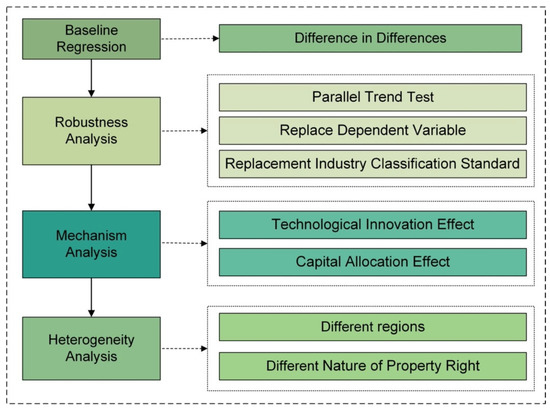 The environmental protection tax, as an exogenous policy, provides a suitable quasi-natural experiment. Hence, a DID method is adopted in the present study to analyze the impact of the tax on enterprise total factor productivity. The research framework of the present paper is shown in Figure 1.