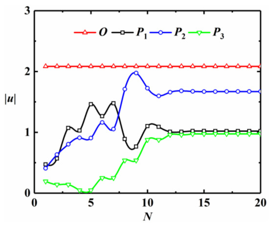 Thus, all coefficients of wave fields have been obtained in an explicit form through rigorous mathematical derivation. After a truncation of the infinite term series in Equations (4)–(6) into finite terms, the wave field in each region can be calculated. In order to ensure the accuracy of the calculation results, convergence tests have been conducted and a frequency dependent truncation of the series term at n ≧ 3 + 4η is found to be enough for high accuracy of the results. The convergence test examples are shown in Figure 3 for four representative positions (O, P1, P2 and P3 in Figure 1). For the calculation cases involved in this paper, a high enough calculation accuracy can be achieved by truncating the series term to n = 15 for brevity.