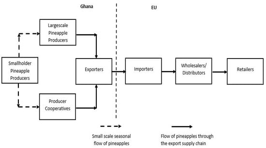 - Fold, N.; Gough, K.V. From smallholders to transnationals: The impact of changing consumer preferences in the EU on Ghana’s pineapple sector. Geoforum 2008, 39, 1687–1697. [Google Scholar] [CrossRef]