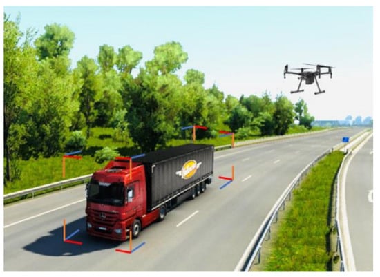 Most existing over-limit detection equipment is fixed. This kind of detection station is expensive, requiring large investments in labor and material resources, and provides little coverage. In contrast, a UAV can provide a mobile detection solution. It has the advantages of small size, as well as high efficiency and flexibility, and has a low level of environmental dependence with wide coverage. As such, it has been applied in the different aspects of the transportation field, such as regular data collection for intelligent transportation systems [14], the delivery of goods [15,16], vehicle tracking [17,18,19,20,21], and traffic monitoring [22,23].