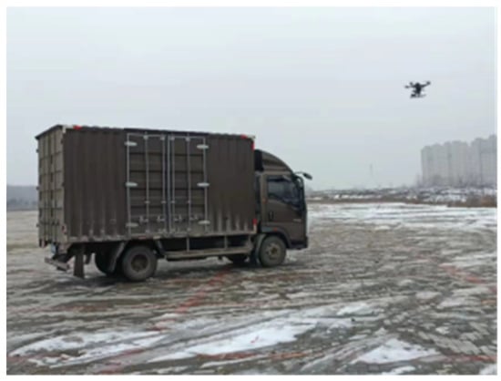 In this study, we verified the proposed algorithm to measure the outer contour dimensions using model vehicles. The model vehicles included a training model vehicle and a test model vehicle. The training model vehicle was used to determine the parameters, and the test model vehicle was used to estimate the algorithm error. The data acquisition scheme is as follows: First, the Mission Planner was used to plan the path and flight speed for the UAV; the planned path circled the truck model. Figure 8 shows the experimental implementation scenario. The SDK-ZED Explorer provided by the ZED development team was used to obtain a video file containing the 360° view of the truck. ZEDfu was then used to convert the video files to point cloud files for output.