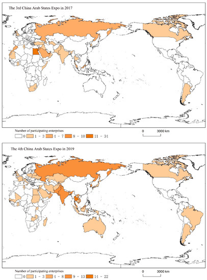 Spatial distribution of foreign companies participating in the 2017 and 2019 China-Arab States Expo.