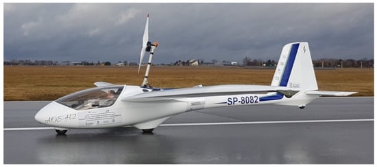 - Frączek, W.; Tomasiewicz, J.; Marjanowski, I.J.; Czarnocki, P. AOS-H2 Motor Glider Technical Data Sheet; Technical Internal Report—Document No. AOS-H2/ADT /I/2015 (not published); Warsaw University of Technology: Warsaw, Poland, 2015. [Google Scholar]